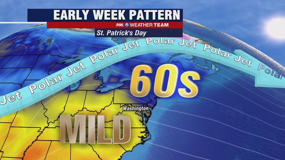 Saint Patrick's Day will be the best day of the week despite the clouds with temperatures climbing to 60 degrees. Keep an eye out for some possible heavy rain and isolated thunderstorms Thursday.
