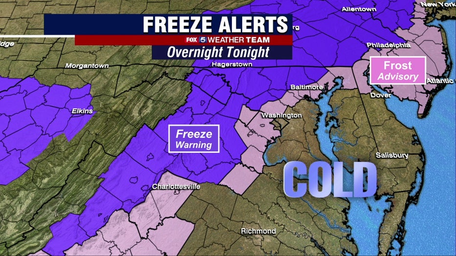 If you still have plants growing outside and don't want them damaged overnight, make plans to move them inside or cover them. A Freeze Watch is in effect for several counties N/W of Interstate 95. Temperatures may drop below 32 in some areas.