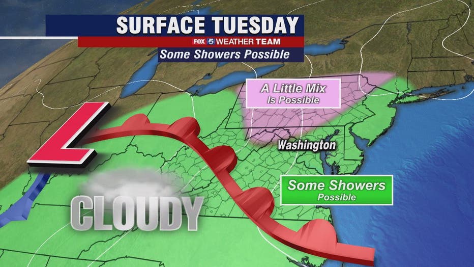 WASHINGTON - Tuesday feels like a bit of a mid-winter setback thanks to chilly temperatures and some scattered light rain showers.