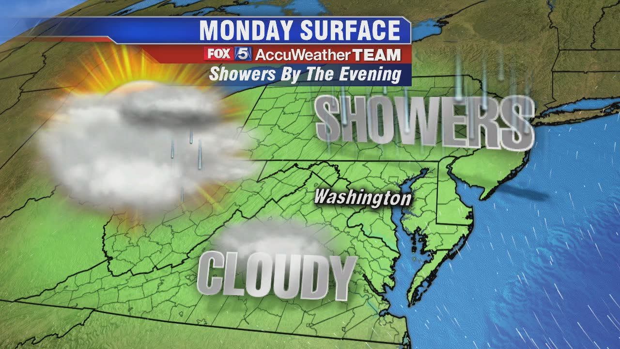 WASHINGTON - A cloudy start to Monday morning as mild temperatures move our direction before evening showers are likely to head our way. FOX 5's Mike Thomas says we can expect an unsettled early week with clouds and rain possible through Wednesday.