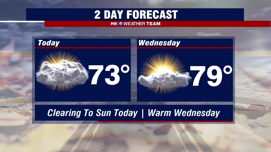 As the sun returns on Wednesday get ready for temperatures to warm up significantly into the upper 70s to around 80.