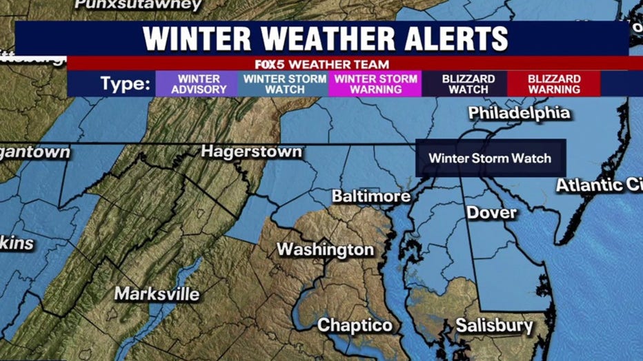 Just after 2:30 p.m. on Friday, the National Weather Service issued winter storm watches for parts of northern Maryland, including the Baltimore area. The watches will be in effect from Sunday afternoon through Monday morning.