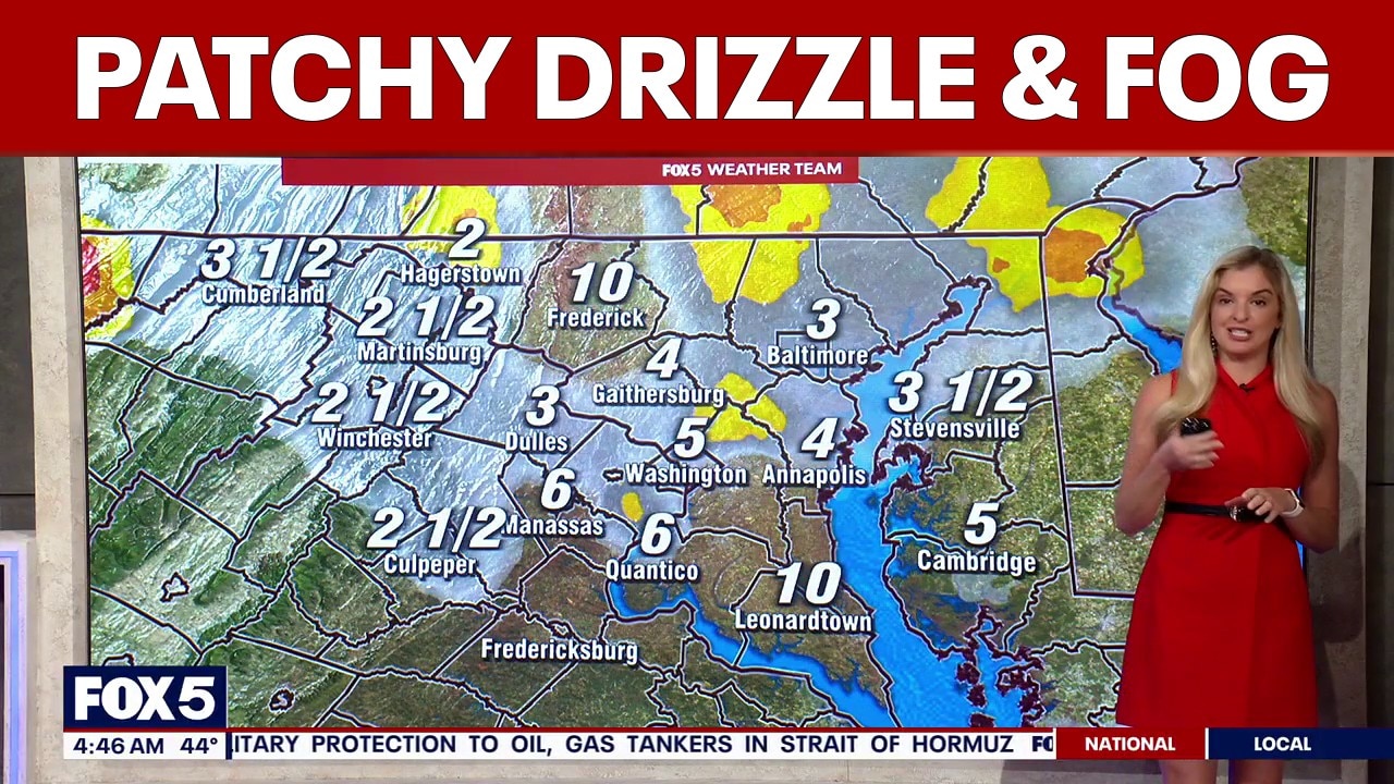 FOX 5’s Taylor Grenda says the morning commute will be wet, but temperatures remain well above freezing, so icy spots aren’t expected. Fog may thicken at times, especially in a few isolated areas, reducing visibility through much of the morning.