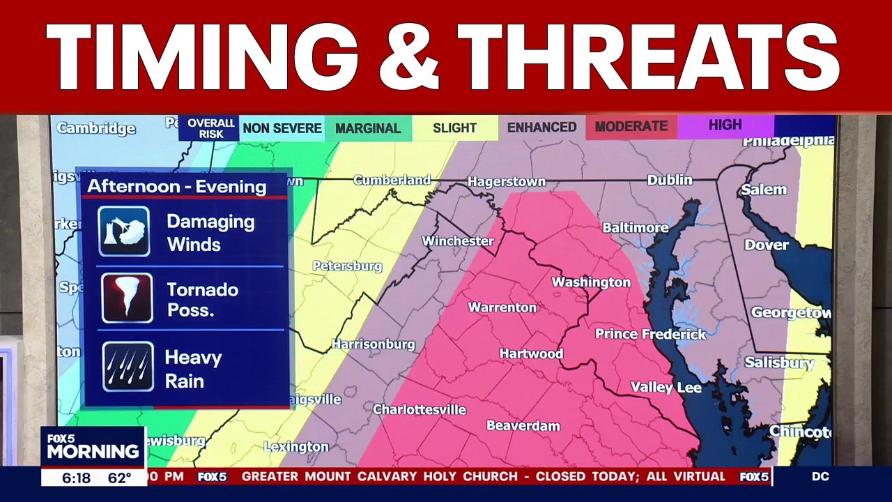 FOX 5’s Tucker Barnes and Taylor Grenda say the threat will build late in the morning and continue into the evening, marking one of the more significant severe weather events the area has seen in recent years.