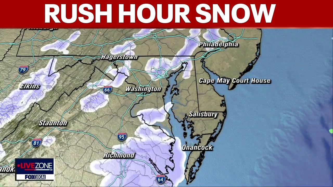 "It won't be a lot of snow," said FOX 5's Tucker Barnes. "But the timing will be such that if we get a quick whiteout for 15 minutes while everybody's driving home from work and school, it could be some problems."