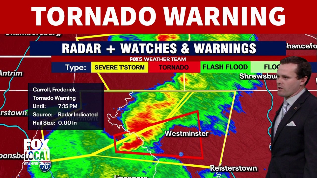 A Tornado Warning has been issued for portions of Carroll County and Frederick County in Maryland. FOX 5's Mike Thomas has the latest.