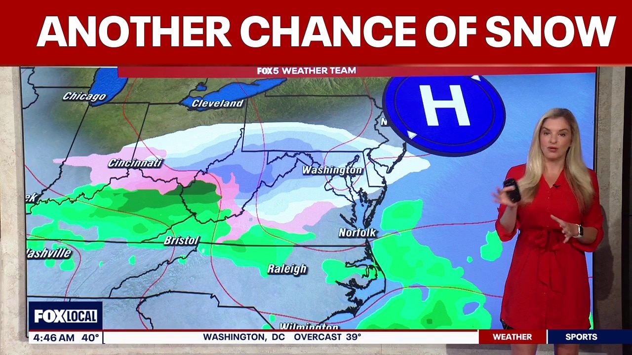 FOX 5’s Taylor Grenda says another chance of snow is possible on Monday across the Washington, D.C. region.