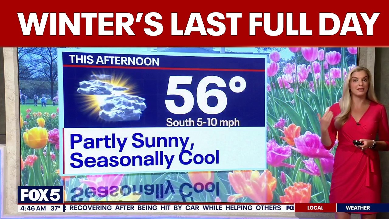 WASHINGTON - Partly sunny skies and seasonable cool air close out winter’s last full day across the Washington, D.C. region Thursday.