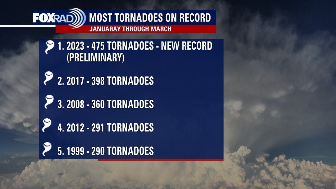 These numbers are well above the historical average for these months and set a new record for the most number of tornadoes reported in the United States for the first 3 months of the year!