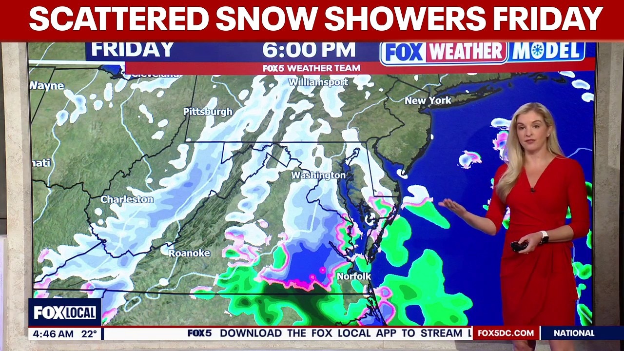 Cold temperatures Friday with scattered snow showers possible toward the afternoon and evening.