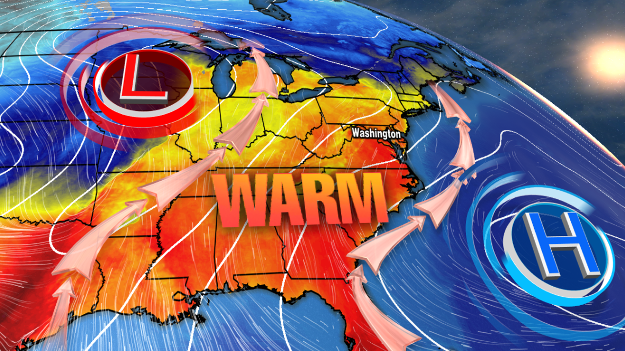 A strong storm system developing out in the center of the country will work in tandem with a feature known as a "Bermuda High" to promote stead southerly midlevel winds this week. These are important for a sustained warm-up. Unfortunately, it won't be a totally perfect warm-up. Showers could grace our skies once again on Tuesday morning before skies clear and temperatures rise by the afternoon. Both Wednesday and Thursday, the warmest two days of the coming warm spell, will feature the chance for a few scattered thunderstorms as well. But at this time, no day looks like a washout, and our severe weather risks look pretty marginal as well.