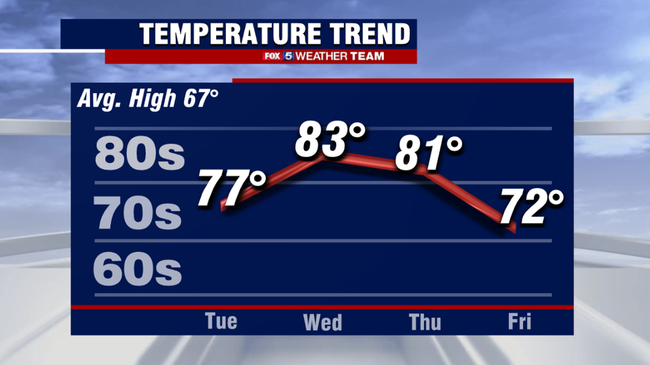 Thankfully, the storm system will weaken as it pushes eastward into the end of the workweek. The bad news is that after that cold front passes, our temperatures will start to be on a downward swing through the weekend. Lower 70s are expected to begin the weekend, but by the Easter holiday on Sunday, parts of our region may once again struggle to break the 60° mark. If this is not bad enough, the frontal boundary will stall just to our southeast.