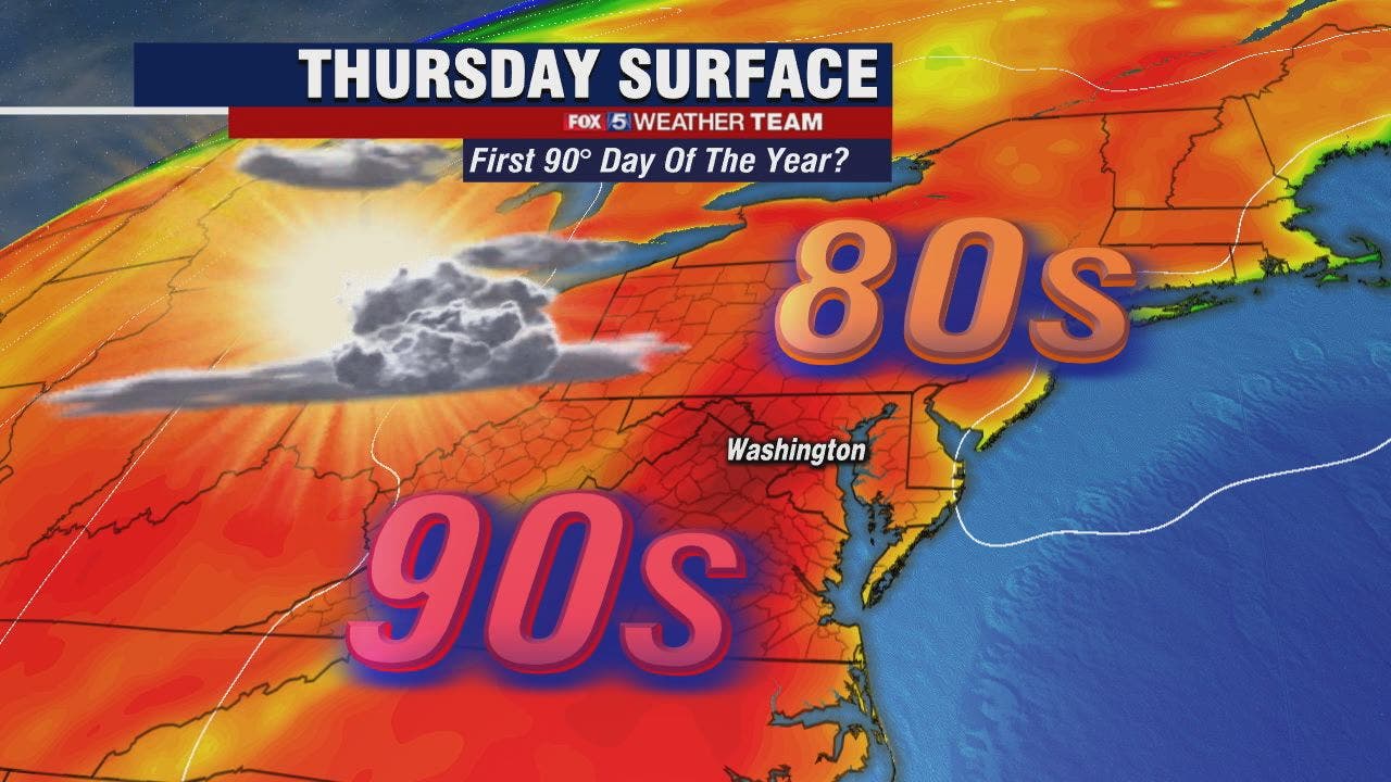 Sunny and hot Thursday with temperatures possibly reaching 90 degrees