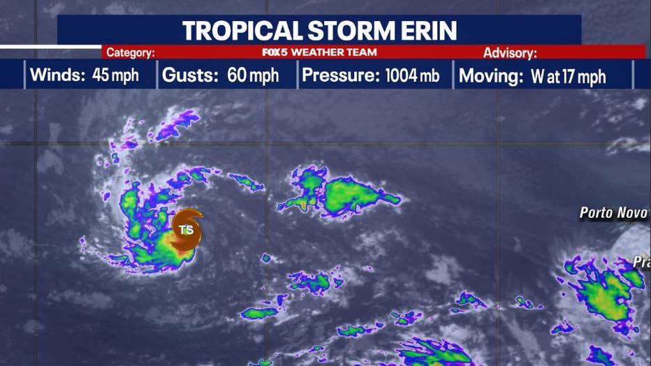 WASHINGTON - Tropical Storm Erin is now the fifth named storm in the Atlantic this season as it formed on Monday off the western coast of Africa.
