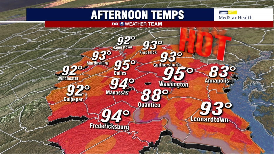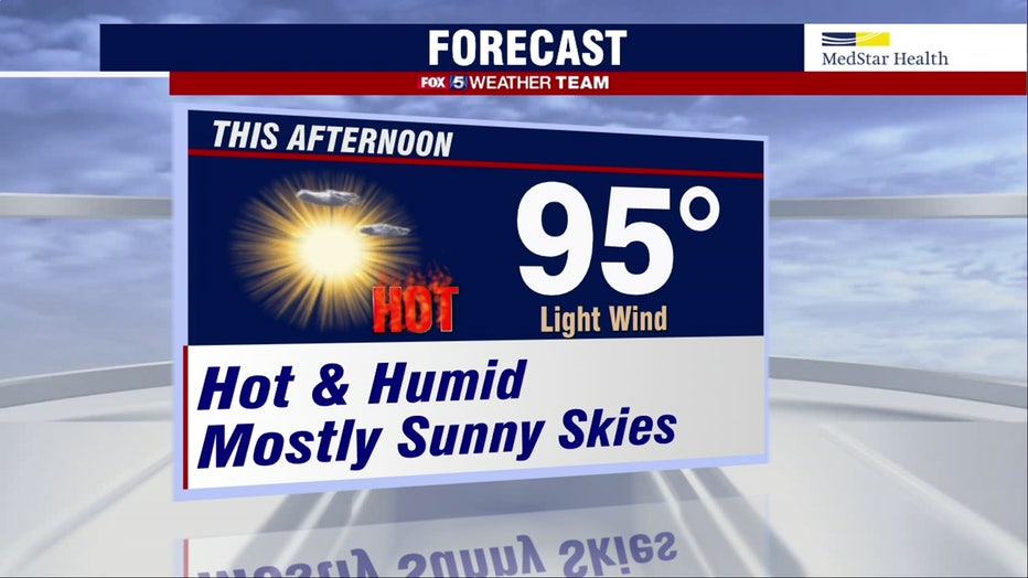 WASHINGTON - A very hot day ahead Tuesday across the Washington, D.C. region with humid conditions and highs near 95 degrees.