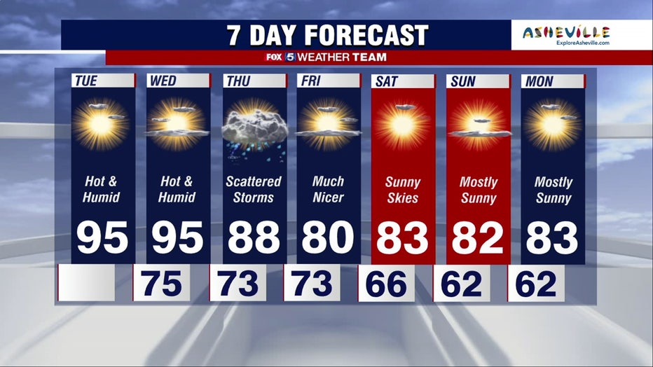 Claire says we can expect the hot and humid conditions to continue Wednesday. Scattered showers possible Thursday with temperatures back in the 80s for the weekend.