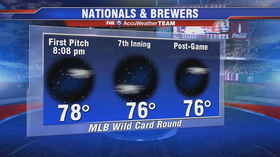 We're hoping for a big night from the Washington Nationals with first pitch temperatures at 8:08 p.m. likely in the upper 70s with a touch of humidity.