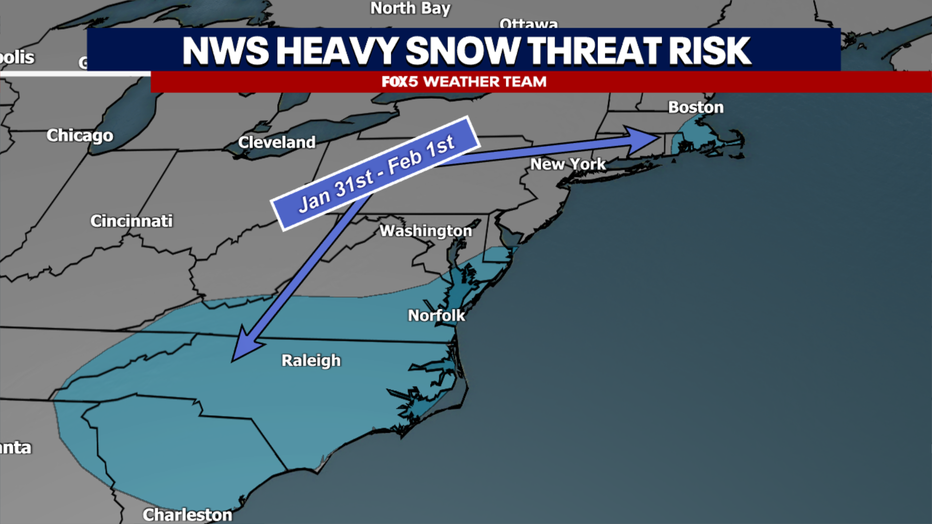 At this time, any snowfall locally would be light and mainly confined to eastern areas. The best chance for more disruptive snow remains along the coast, especially on the Eastern Shore near Ocean City, MD. Eastern North Carolina and parts of eastern New England have the highest likelihood of more significant impacts.