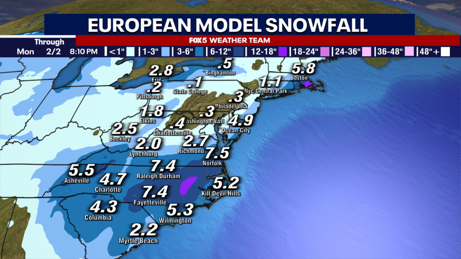 Most weather models — including the European and American models — have trended east over the past couple of days. The latest European model brings steady snow to Eastern Virginia and the Eastern Shore, with little to no accumulation closer to I-95. The American model keeps the storm even farther offshore, resulting in no snow for D.C. and only minor coastal impacts.