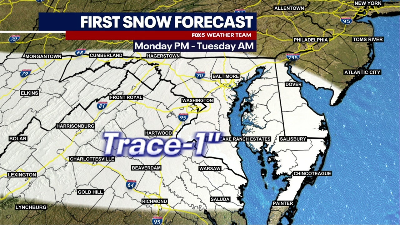 FOX 5’s Taylor Grenda says the region will get a quick return to winter after a beautiful weekend, with temperatures dropping sharply on Monday. Morning temperatures will be near 34 degrees with a slight wind chill making it feel a little colder.